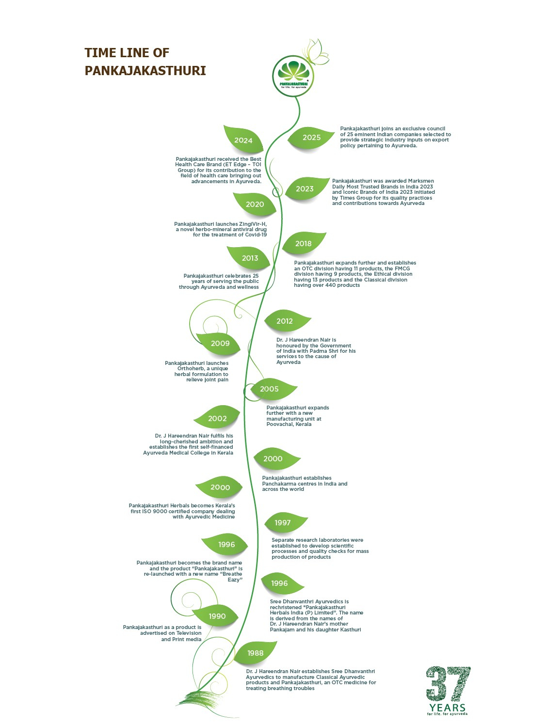 His untiring efforts, dedication and commitment paved the way for Pankajakasthuri’s exponential growth from a small makeshift development centre and clinic to one of Kerala’s largest pharmaceutical corporate.